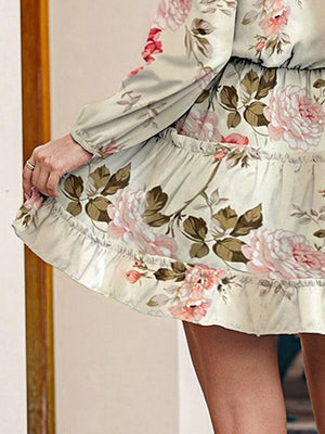 Printed Tie Neck Long Sleeve Dress